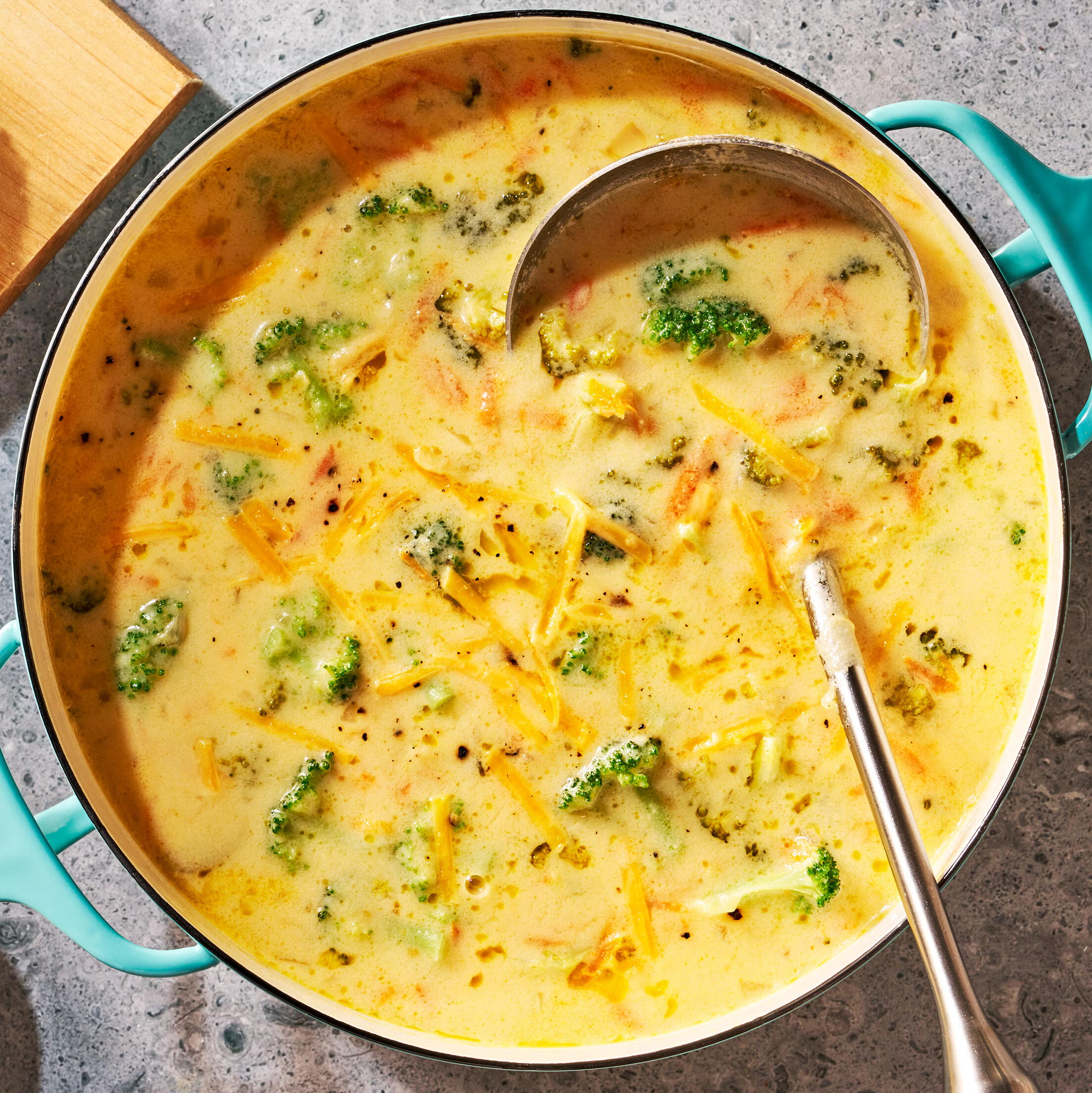Tender broccoli and sweet onions simmered in a velvety cream base, enriched with sharp cheddar for a rich, cheesy finish. Smooth, hearty, and deeply comforting, each spoonful delivers warm, savory indulgence with a perfect balance of freshness and richness.